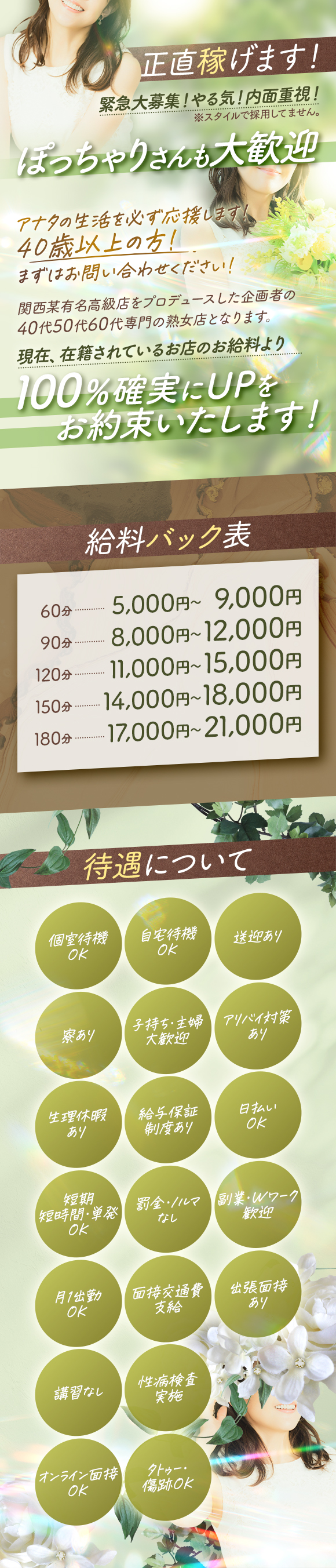 【1日6時間勤務最低保証3万円】熟女さんOPENにつき緊急大募集!